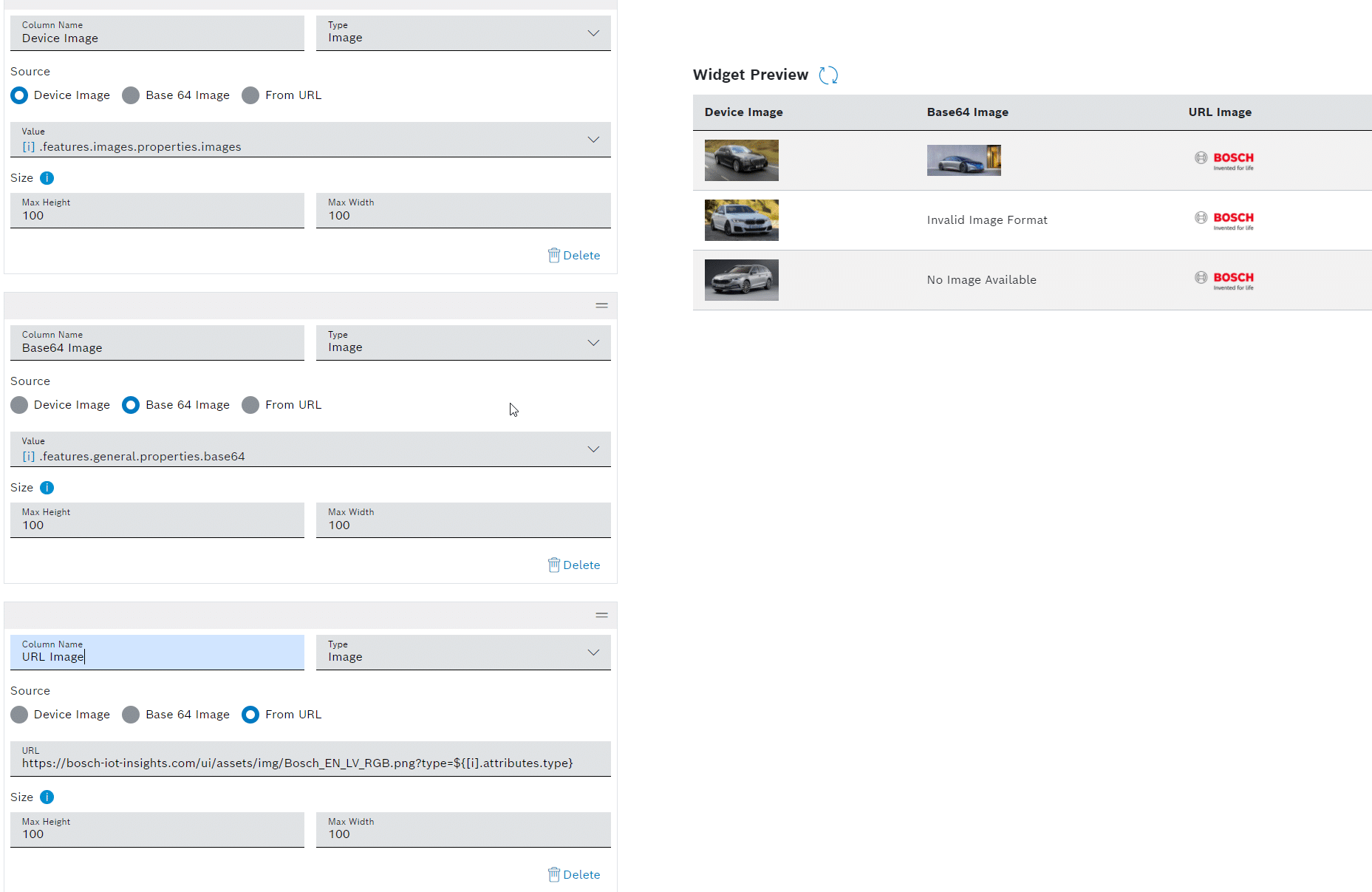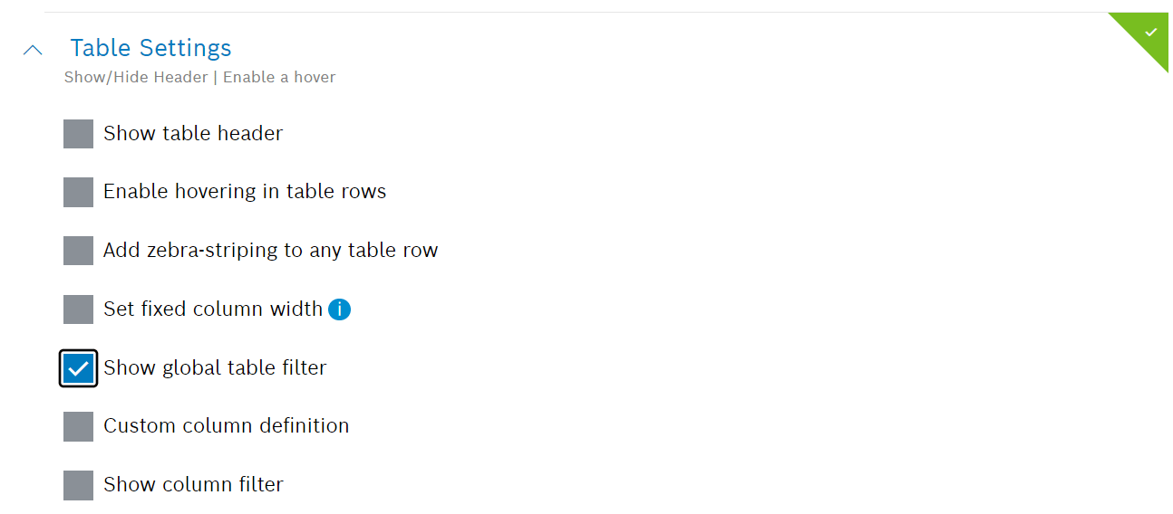 - Conditional actions – Tables are compliant with the recent Bosch Brand Guide.