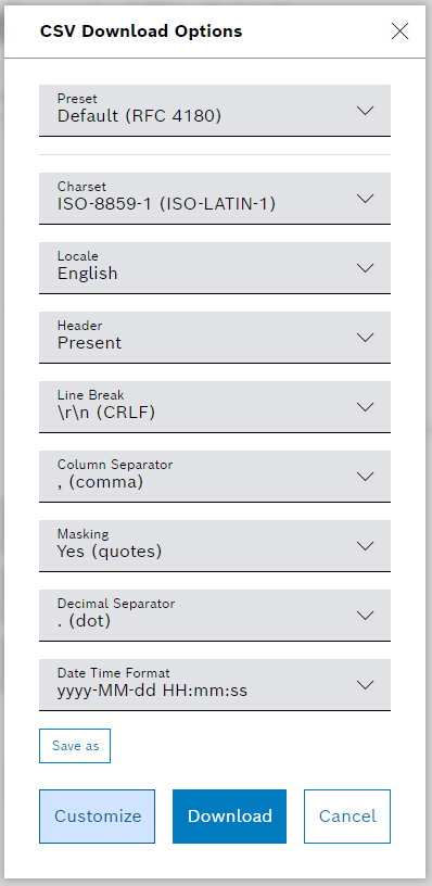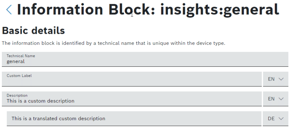 - Embedded dashboard – The language code can be provided to Bosch IoT Insights by an embedding parent page.