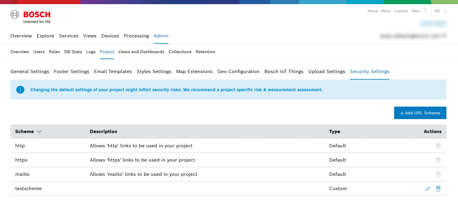 Besides the default URL schemes, like HTTP and HTTPS, the user is now able to “whitelist” custom schemes as hyperlinks for his subscription. That allows the user to enable application-specific links. The application-specific links can be defined in the Project Security Settings.