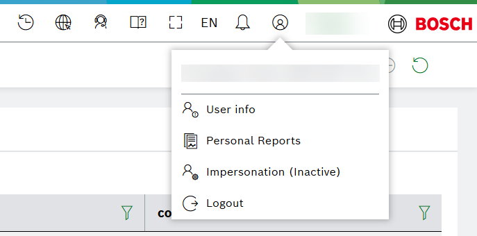 The personal reports used to be applicable for Table widgets only. Now, you can configure personal reports in the same way as described in Personal Reports for your Chart widgets, too, starting from the User Menu icon and selecting the respective option from the drop-down menu: