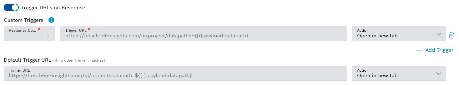 - In the Trigger URL field, enter a URL that will be opened for the response code you entered in the Response Code field.