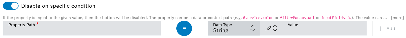 - Activate the Disable on specific condition switch to disable the button if the configured conditions apply.