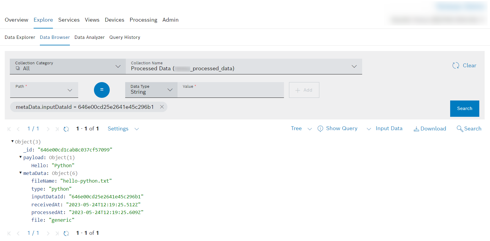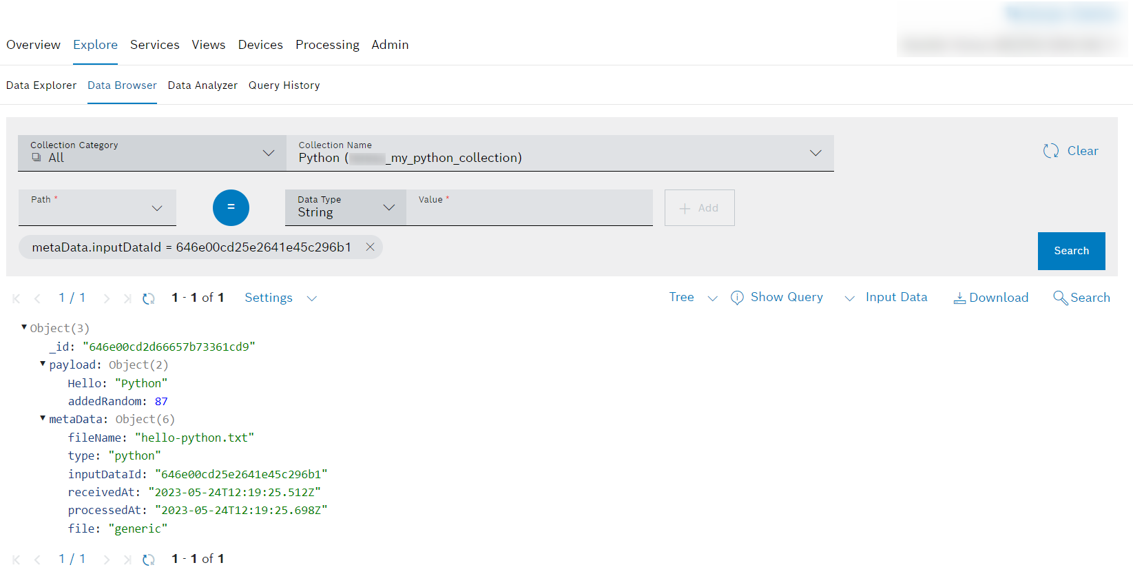 python. In case you uploaded the document before, you could also delete/purge the corresponding input history and processing information entries.- Open the tab with the new output collection we created while configuring the pipeline.