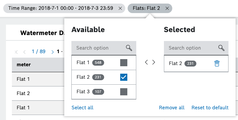 - Add a Selection filter type with filter name Flats, technical name: flats, and an additional option: Allow multiple filter values.