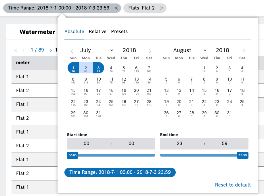 Keep in mind that all the sample data here falls within the time range from 2018-07-01 00:00 to 2018-08-31 23:59.
