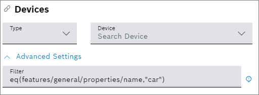 Open the Advanced Settings pane to specify a filter and narrow down the devices shown in the Search Device field.