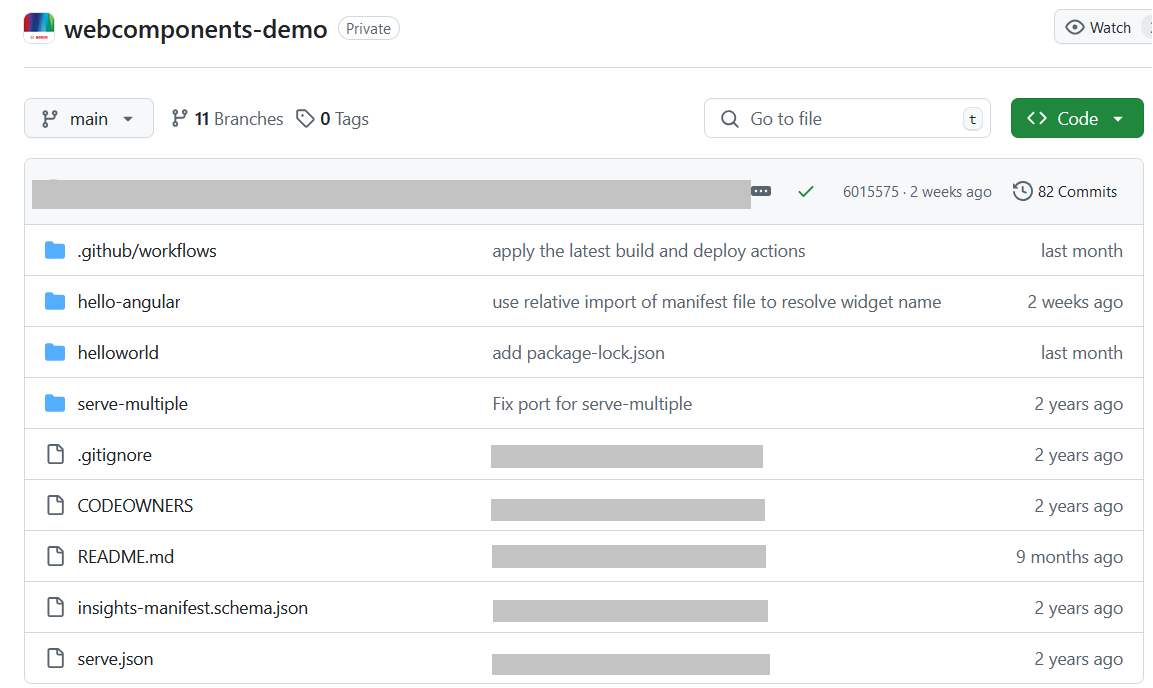 npm installand verify that the widget runs locally. For details, refer to Running and testing your widget locally. - Check whether a package-lock.json file is successfully auto-generated. If so, commit this file to your target repository. This will allow the build actions to use the desired version of the direct and peer dependencies.