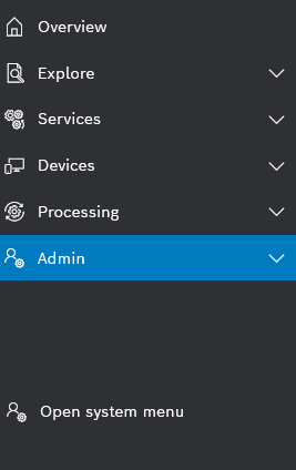 - Click Open system menu, the entry at the very bottom of the side navigation for users with Admin role.