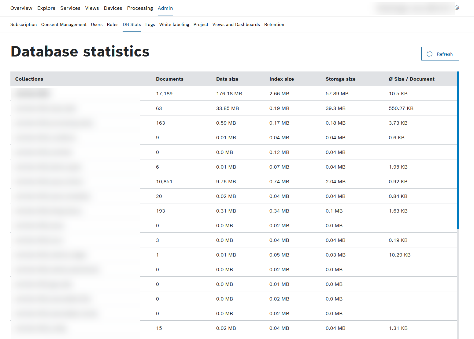 In DB Stats, an overview of the project and specific areas in the project is provided: