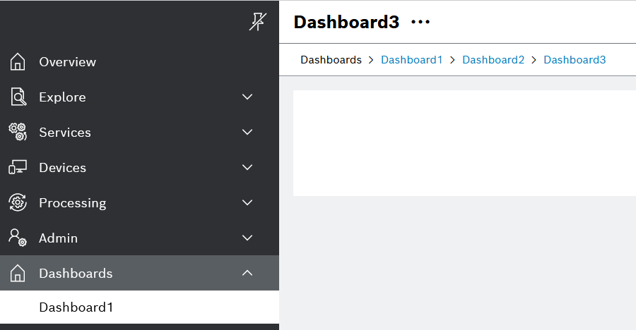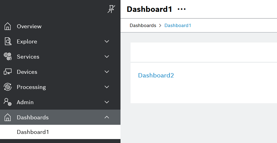 The Dashboards menu item allows you to configure additional dashboards for your Bosch IoT Insights project in order to display collected data.