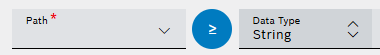 → The drop-down list opens, containing available operators to select from, e.g.,Exists,Contains,Equals,Greater than, orLess or equal to, etc. In the Data Type drop-down list, select a data type which matches your data type of the path.