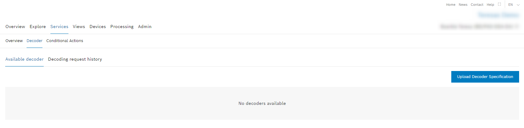- Decoder Specifications: Manage (view, upload, or delete) decoder specification files