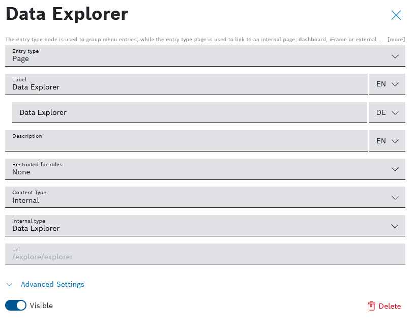 → The entry configuration dialog is displayed. - In the bottom right corner, click the delete icon.
