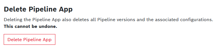 - In the Delete Pipeline App section, click the Delete Pipeline App button.