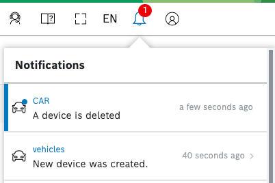 - Check the notification bell on the header bar. The notifications are automatically refreshed every 30 seconds.