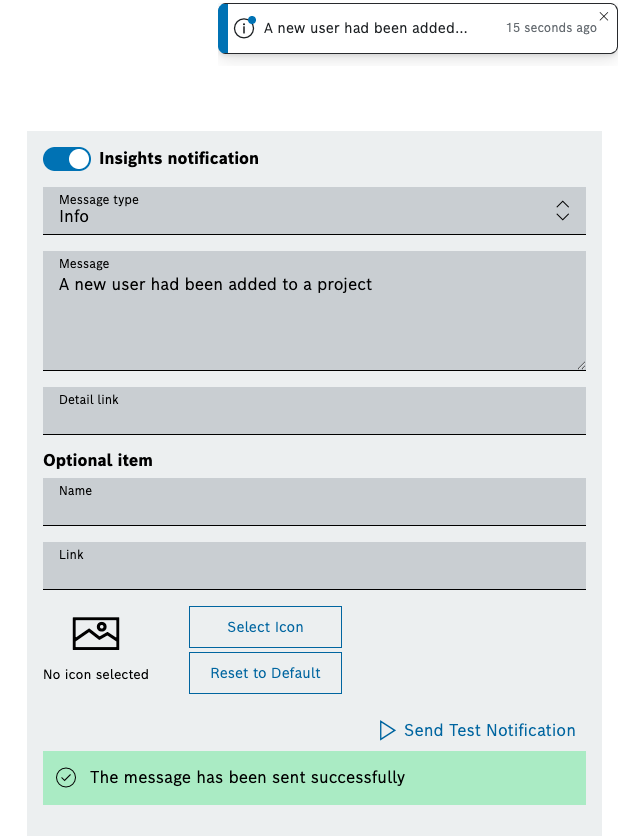 - In the Detail link field, enter a url which can be clicked from the notification for further details.