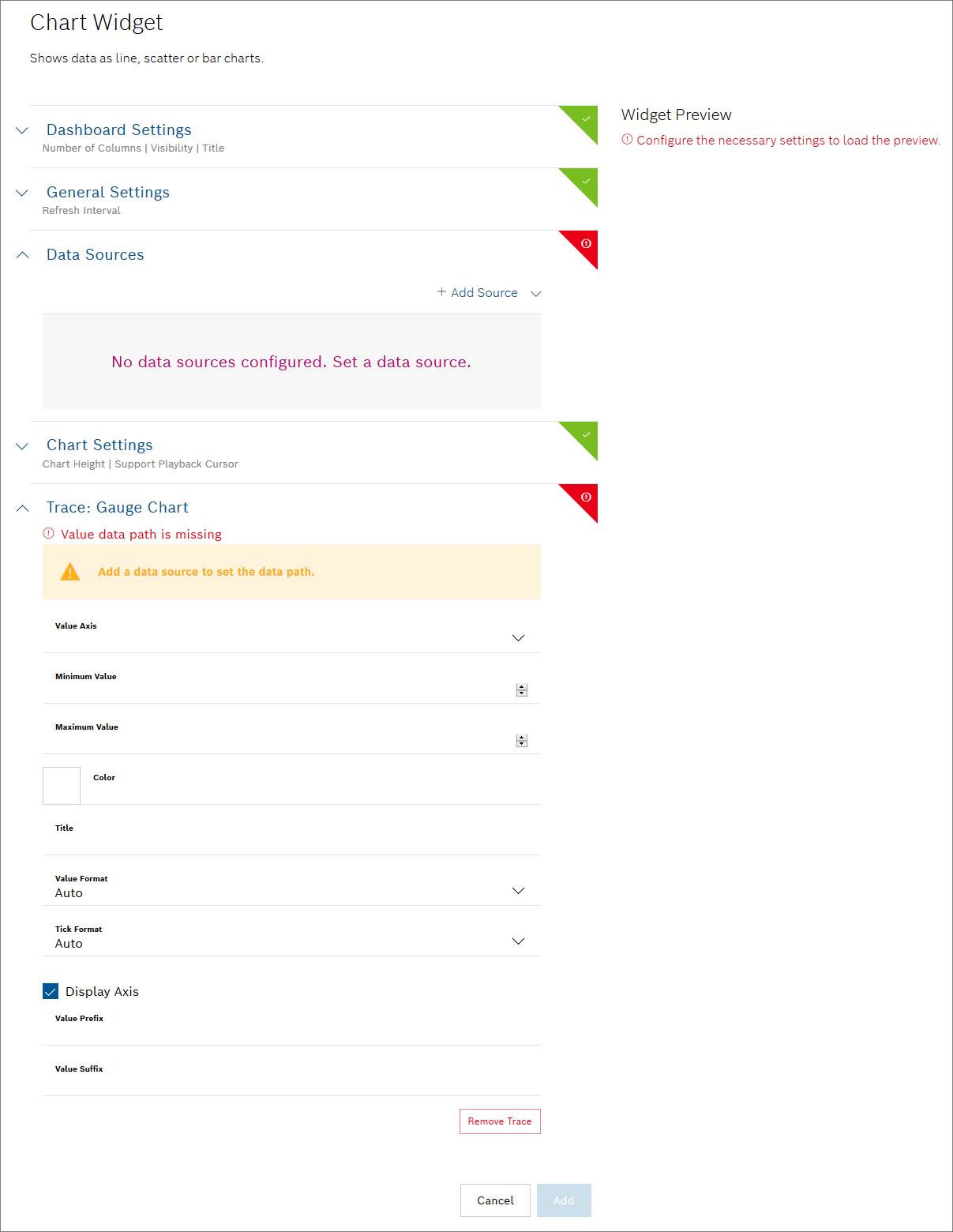 - Select the Gauge Chart widget in the widget list.