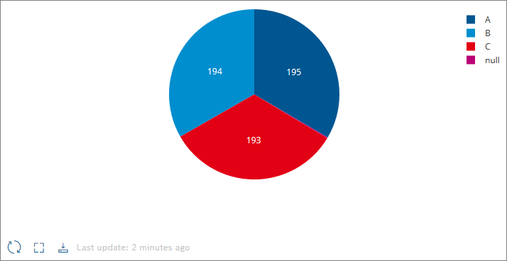 Using the Pie Chart widget, data can be displayed in a pie for absolute values and percentage.