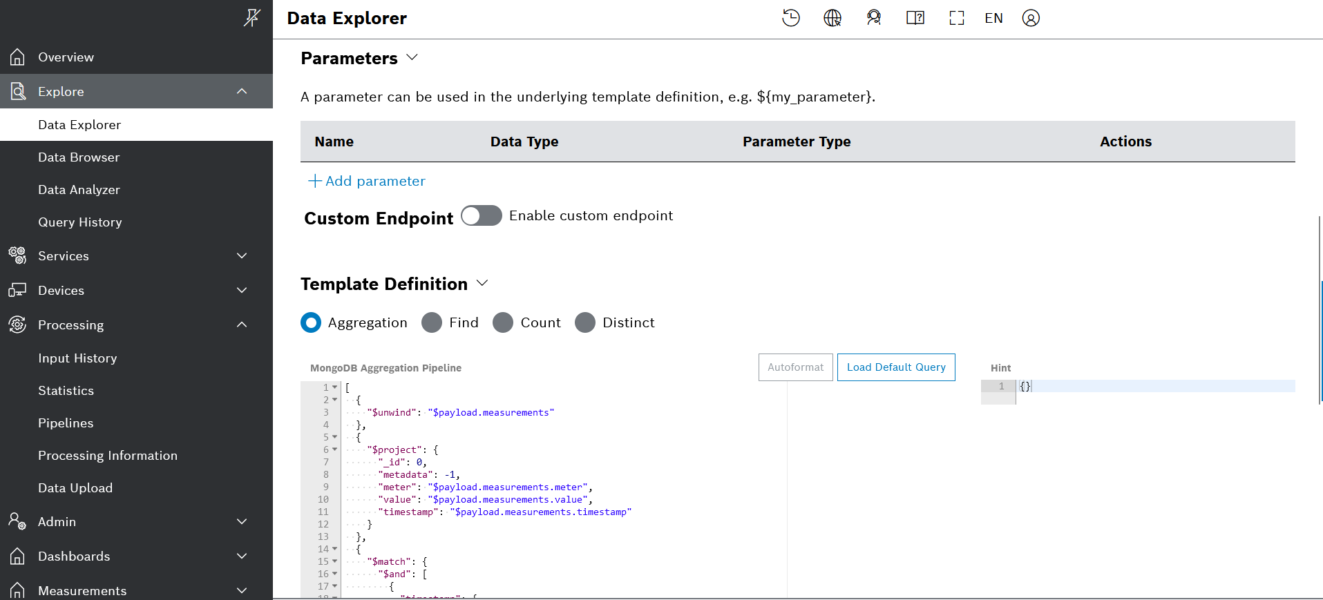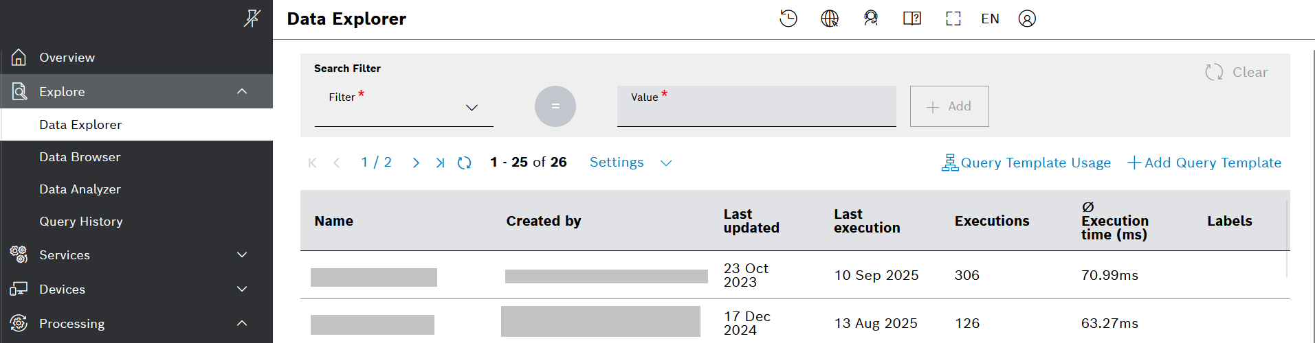 1. On the left navigation, go to Explore > Data Explorer and click Add Query Template in the top right area.