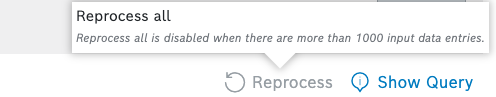 When the number of documents exceeds 1000, reprocessing is disabled with a hint that there are more than 1000 input data entries: