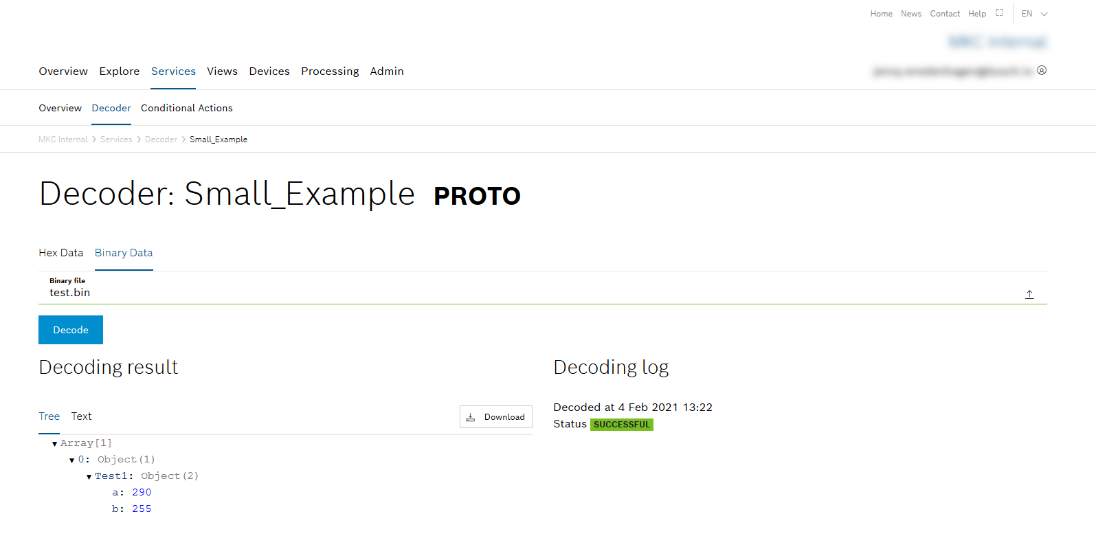When sending binary Protobuf data to your project, the data is decoded based on the specification file and stored into the database for further analyses.