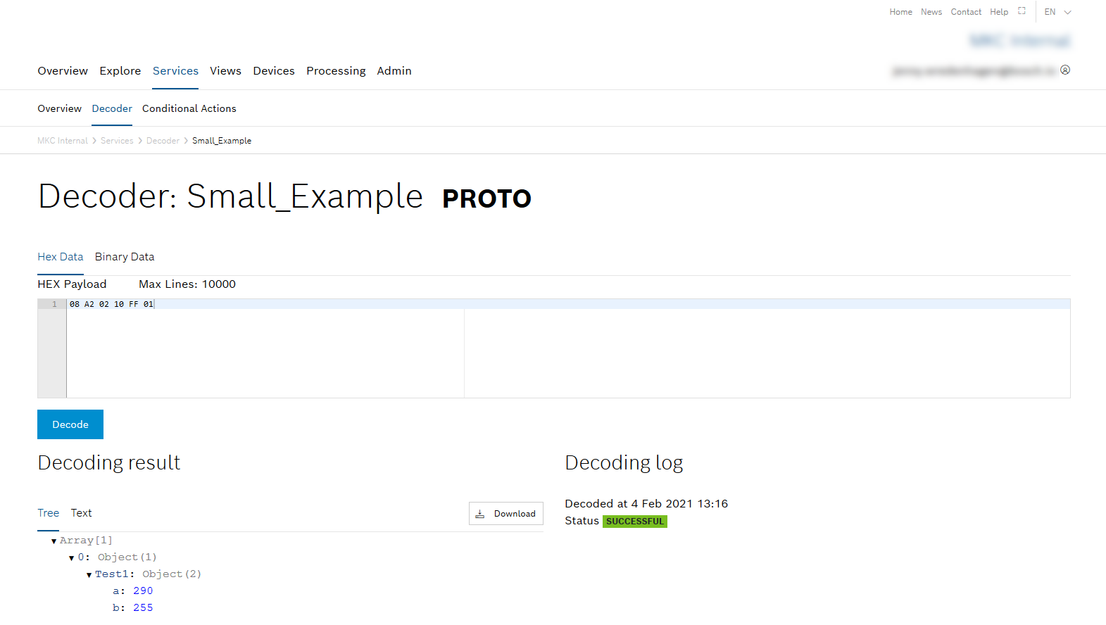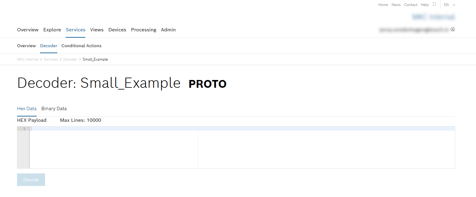 - Click the Services > Decoder menu item.