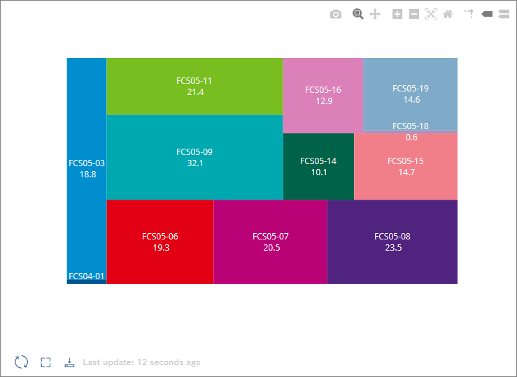 Using the Treemap Chart widget, data can be displayed in different squares.