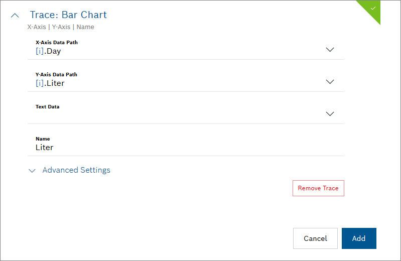 11. Scroll down to the Trace: Bar Chart pane to select the parameters for the axes.