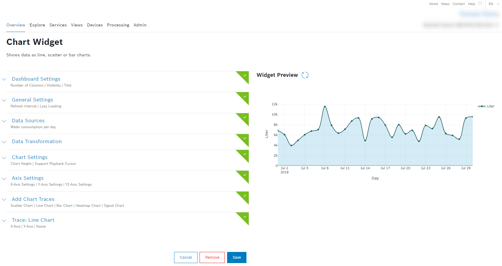 The next step is to visualize your data. Therefore, we will create a bar chart widget onto your Overview page that shows the data for the month of July. The Overview menu item also acts as your dashboard where you can monitor all your data.